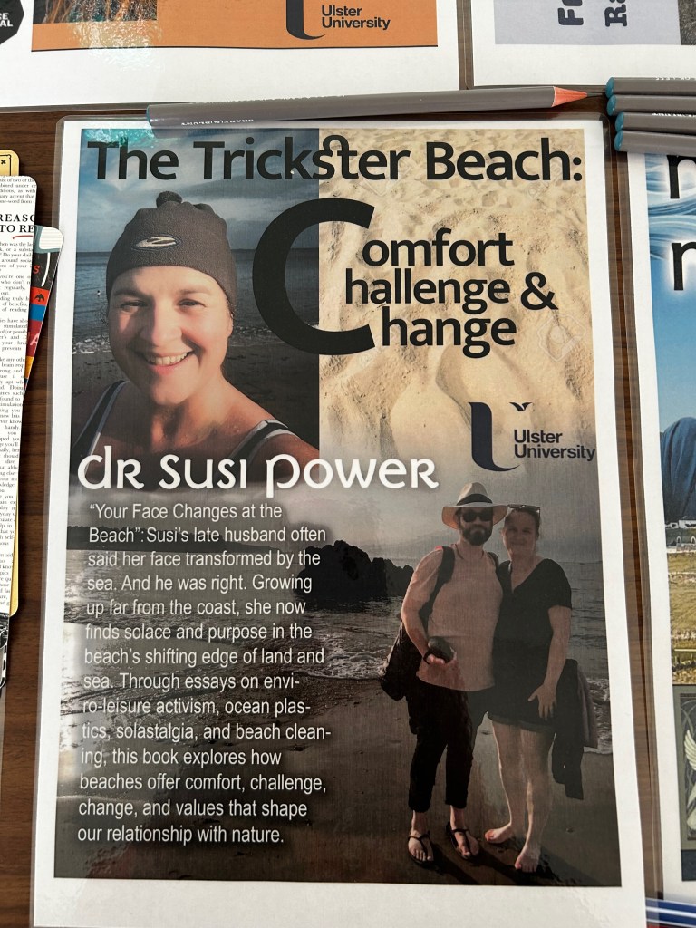 Readers chose from specially designed book covers, selecting the stories they wished to “borrow.” What unfolded next was a morning filled with attentive listening, generosity, and care. Many readers asked about beach cleaning, a hobby that has also become a vital part of my research. We spoke about the overwhelming challenge of ocean plastics and the psychology of beach cleaning as a form of enviro-leisure activism. Some conversations were deeply personal. I shared how the beach sustained me during my husband’s illness and after he passed. The rhythmic practice of beach cleaning brought quiet solace. The cold-water shock of sea swimming brought moments of aliveness when life felt unbearably heavy.